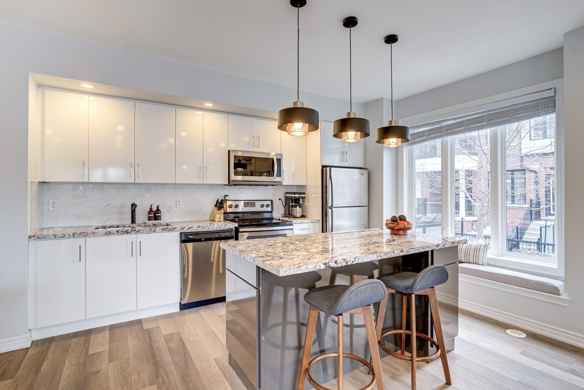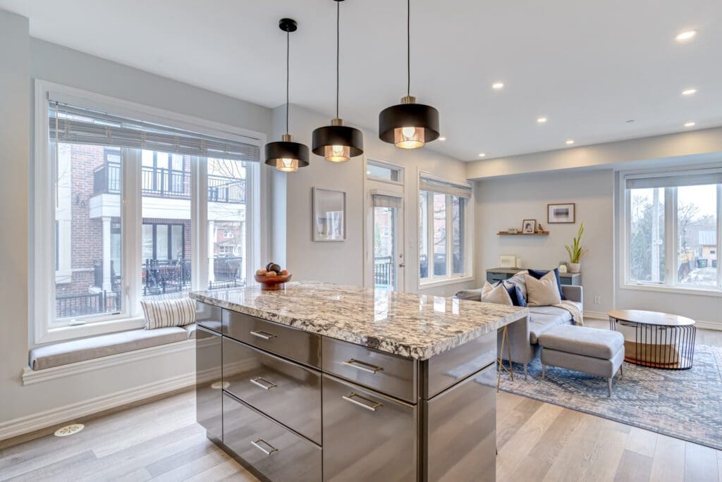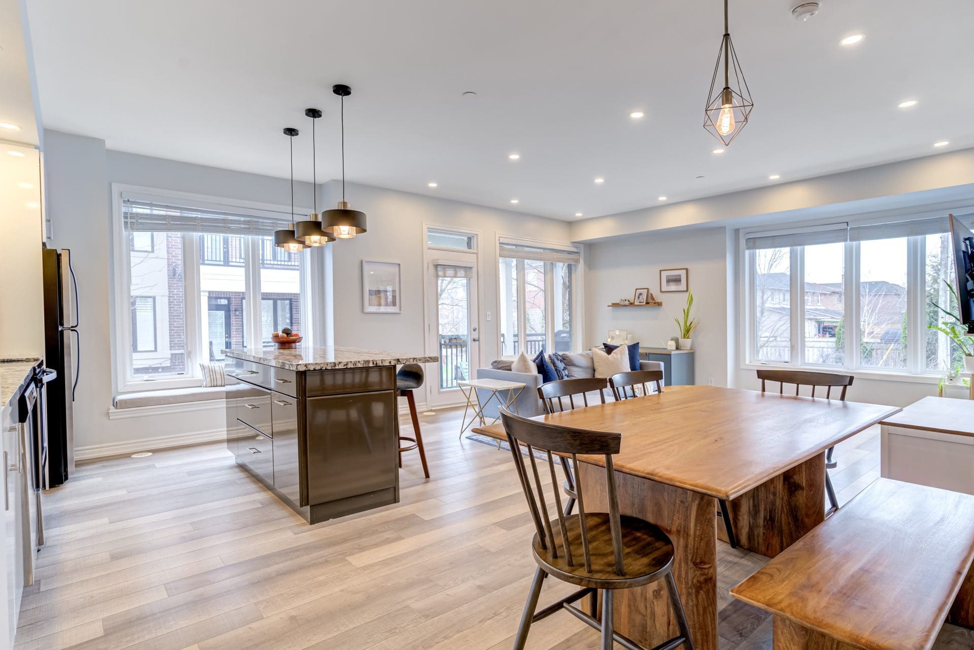 The exceptional main floor layout boasts a desirable private front entrance with main floor powder room and large closet. The open concept living, dining and kitchen area is ideal for hosting both intimate family gatherings and lively social events..