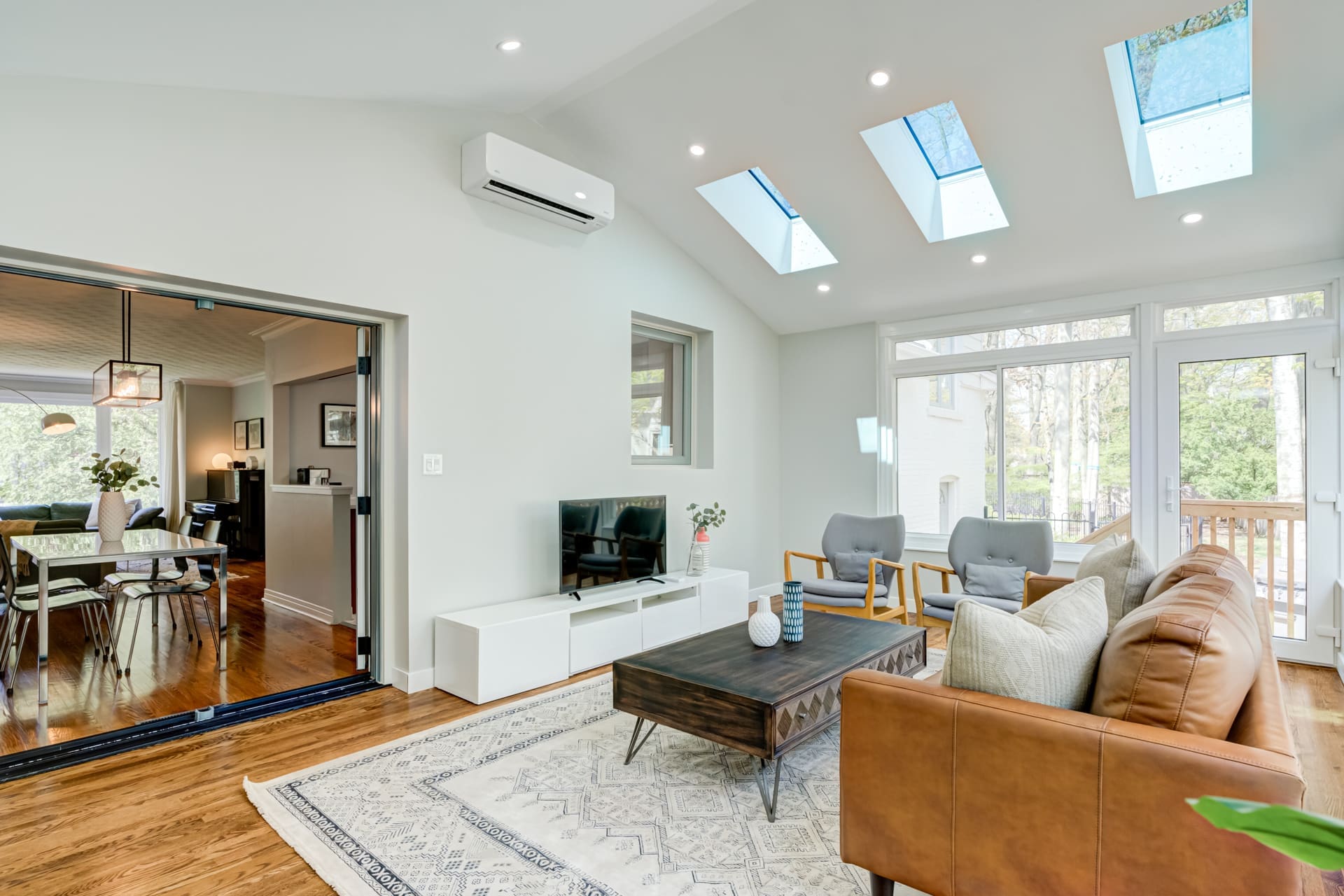 - Brand new addition featuring wall to wall windows, skylights, hardwood floors, walk-out to yard & mini-split system (heating/cooling)